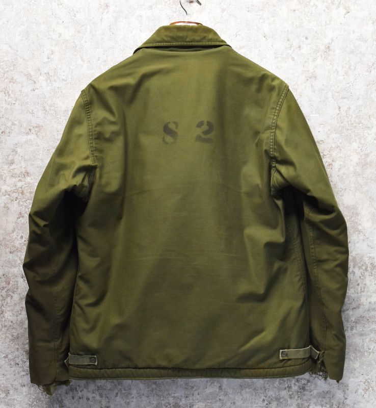 80's【ビンテージ】【米軍実物】U.S.NAVY【バックステンシル入り】【A-2】【デッキジャケット】【サイズL】