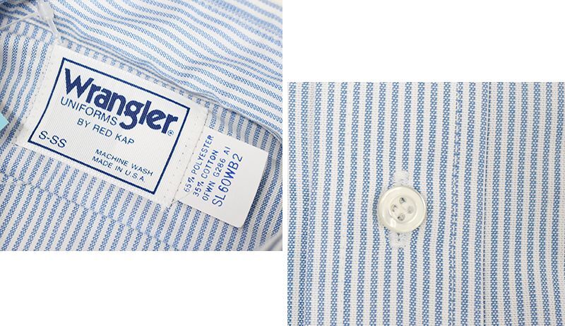 USA製【デッドストック】【ビンテージ】【Wrangler×RED KAP】ラングラー×レッドキャップ【白×水色ストライプ】【半袖シャツ】【サイズS】