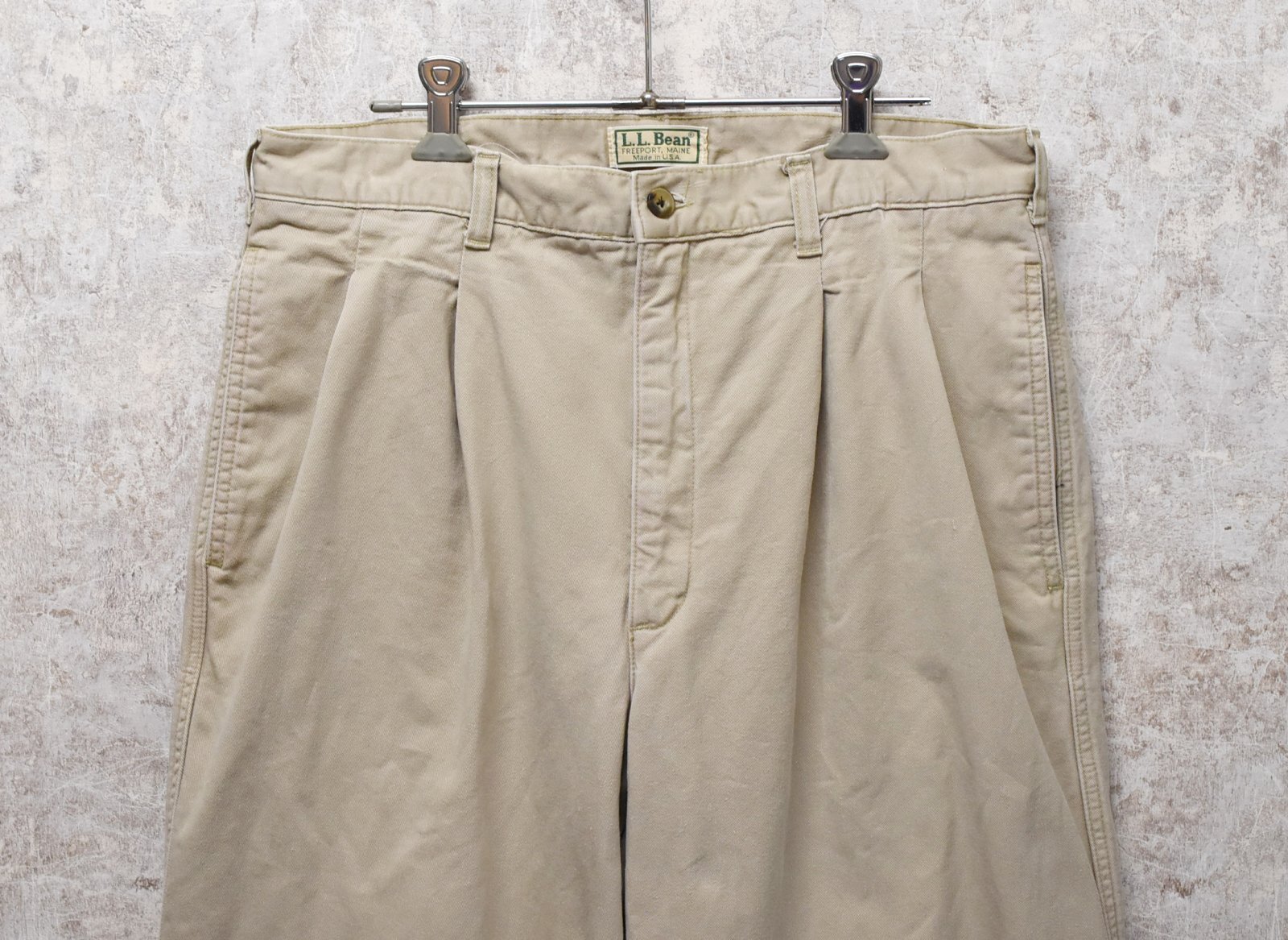 90's【ビンテージ】【L.L.Bean】【エルエルビーン】【裏地赤チェック】【コットンパンツ】1タック【ベージュ】【31×34】