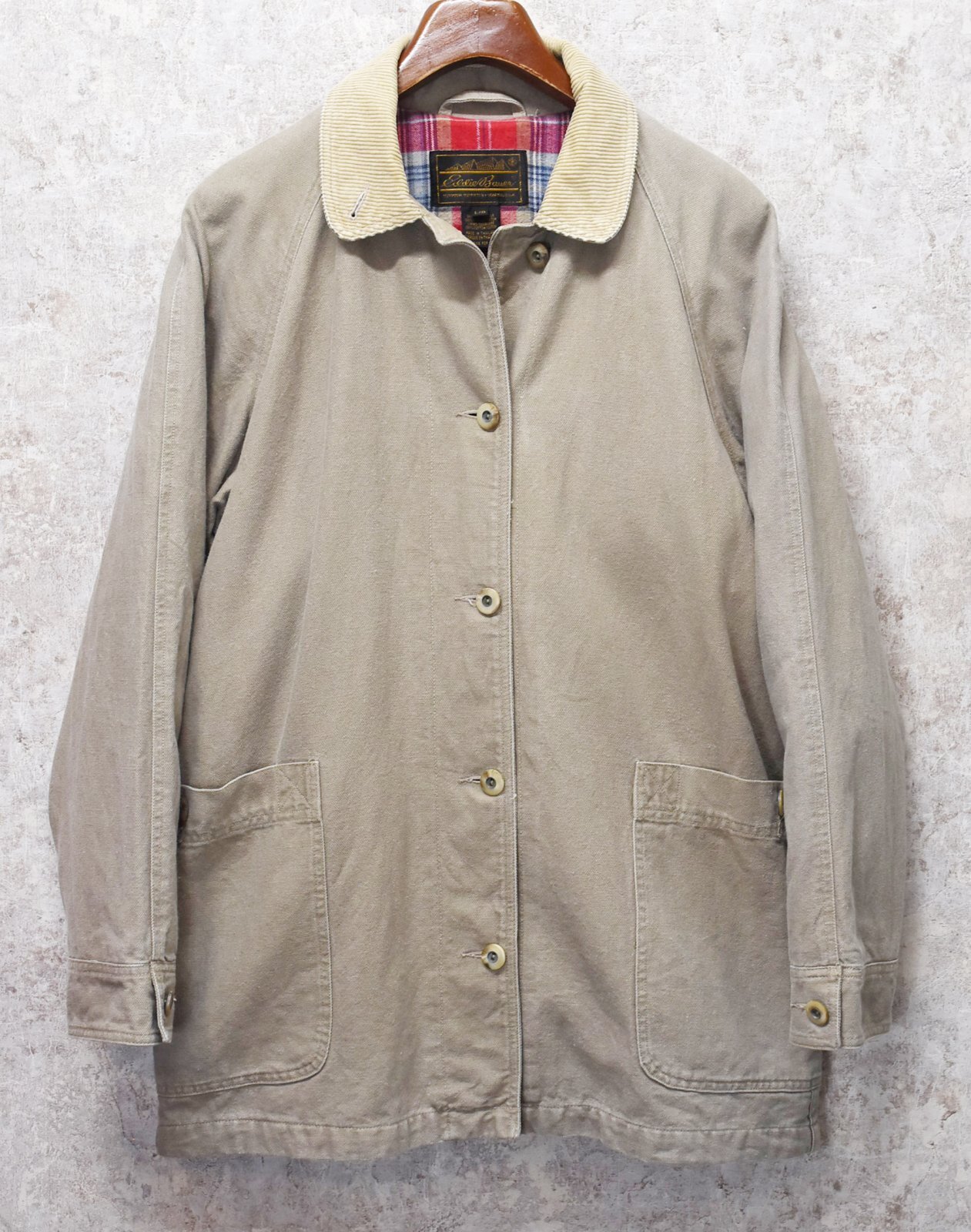 ~90's【ビンテージ】【エディーバウアー】【ベージュ】チェック裏地付きコットンジャケット【カーバーオール】レディース古着【サイズL】