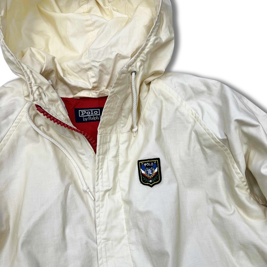 【ビンテージ】【POLO RALPH LAUREN】【ラルフローレン】【ナチュラルx袖青ライン】【コットンパーカー】【サイズM】