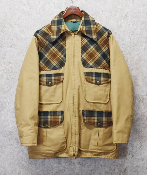70's〜【ビンテージ】黒タグ【Eddie Bauer】【エディーバウアー】【チェックウールxベージュ】【ジップアップ】【ダウンジャケット】