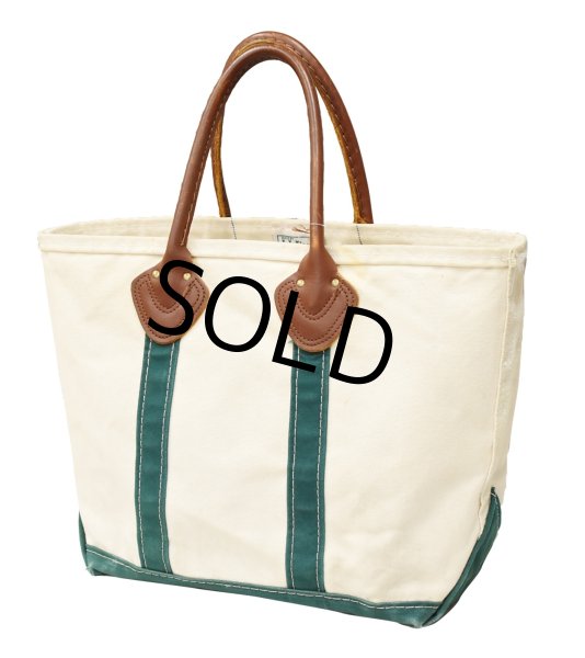 80's【ビンテージ】【L.L.bean】【レザーハンドル】【エルエルビーン】生成りx緑【キャンバス】【トートバッグ】【キャンパストート】