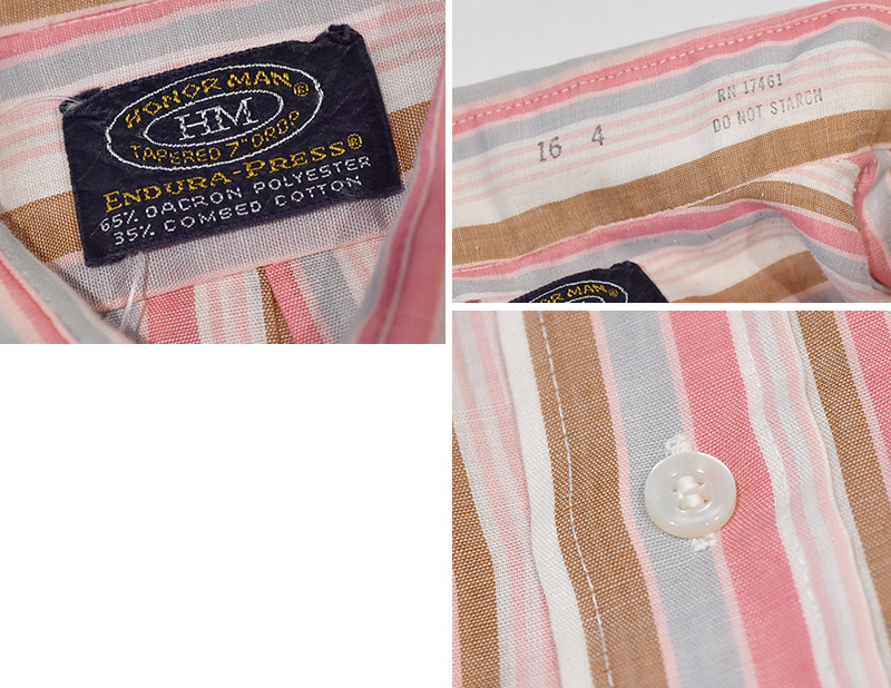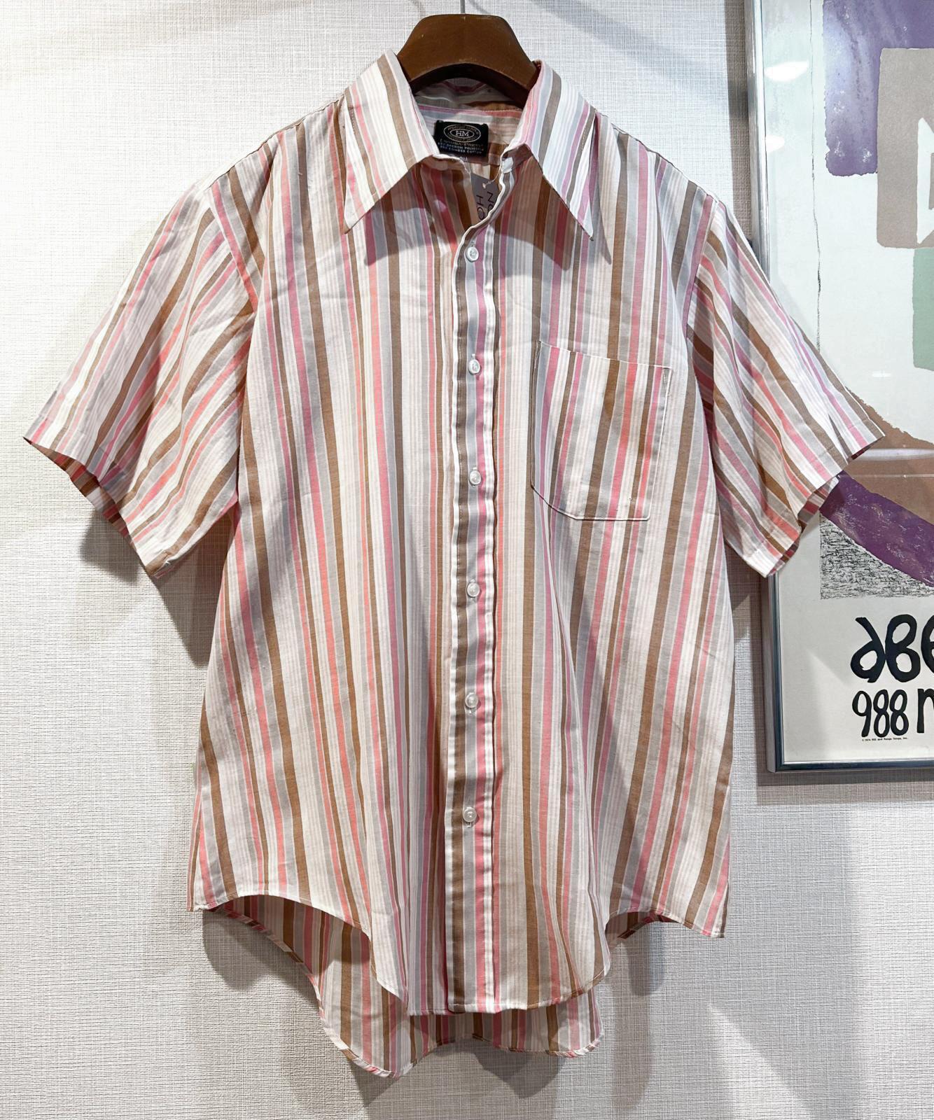 70's~【ビンテージ】【HONORMAN】【ピンクストライプ】【ポリコットン】半袖シャツ【半袖コットンシャツ】【サイズ16-4】