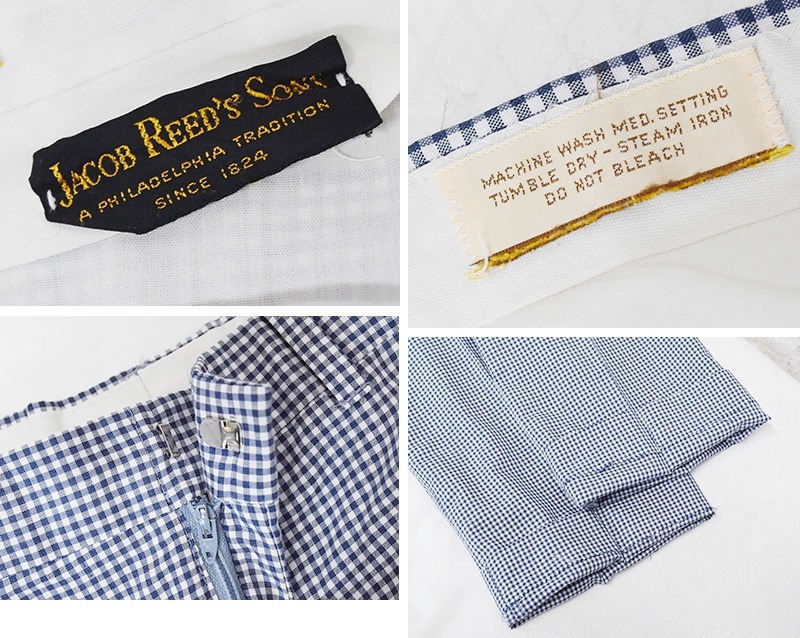 80’s【ビンテージ】【JACOB REED'S SONS】【白×ネイビー】【ギンガムチェック】スラックス【W34程度】