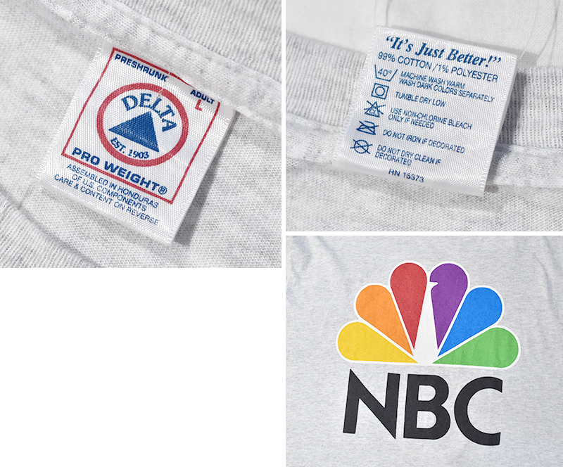 ビンテージ【DELTA】NBCプリント National Broadcasting Company 企業ロゴ ナショナル・ブロードキャスティング・カンパニー グレーTシャツ L
