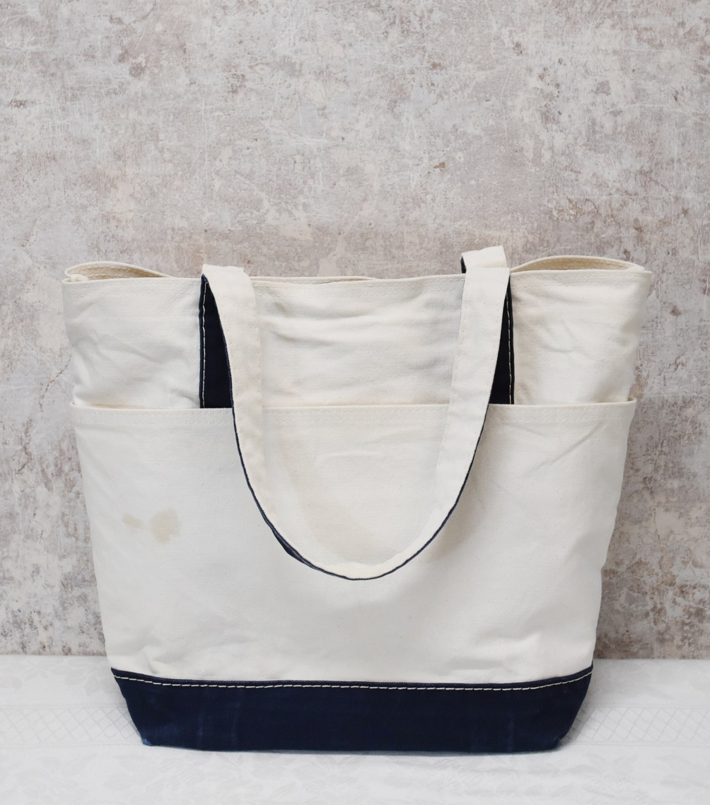 【USA製】【ビンテージ】【KKA】【白x紺】【キャンバス】【トートバッグ】