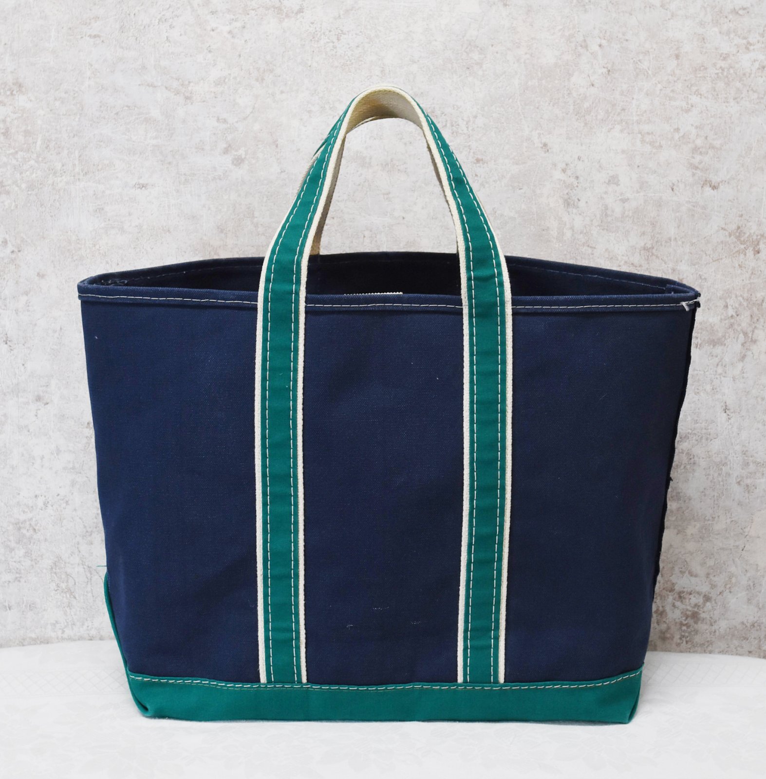 80's【程度良好】【ビンテージ】LLビーン【L.L.bean】紺×緑x白【デラックストートバッグ】