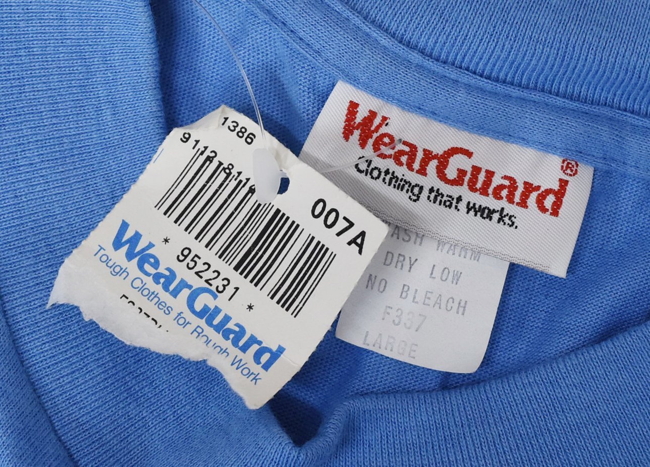 デッドストック 90's【USA製】Wear Guard ウェアガード【ビンテージ】水色 胸ポケット 無地 【Tシャツ】【サイズL】