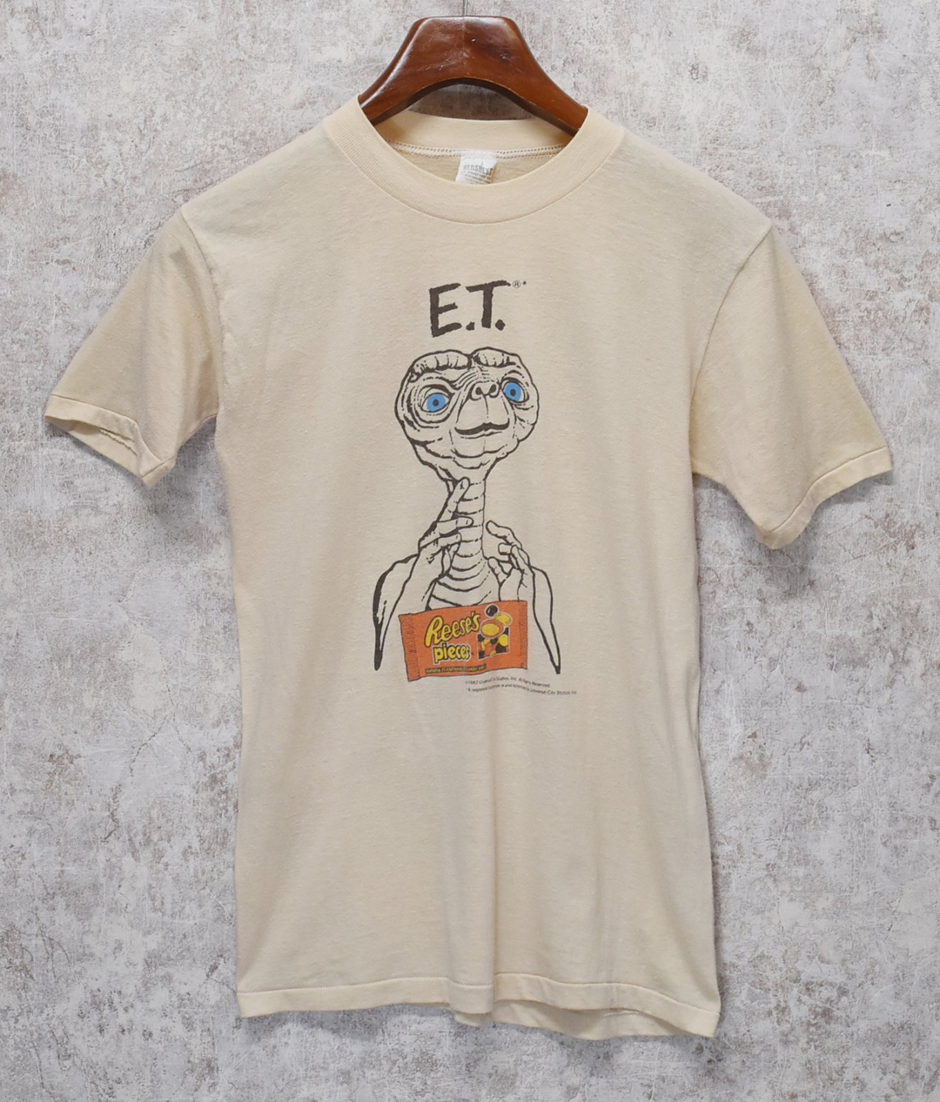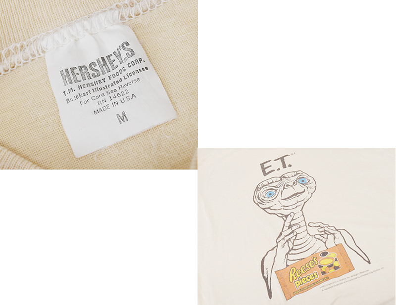 【80's】【USA製】【ビンテージ】【HERSHEY's】ハーシーズ【ET】イーティー【ET Reese's pieces】【ベージュ】【Tシャツ】【サイズM】