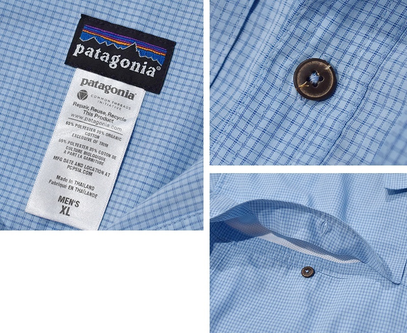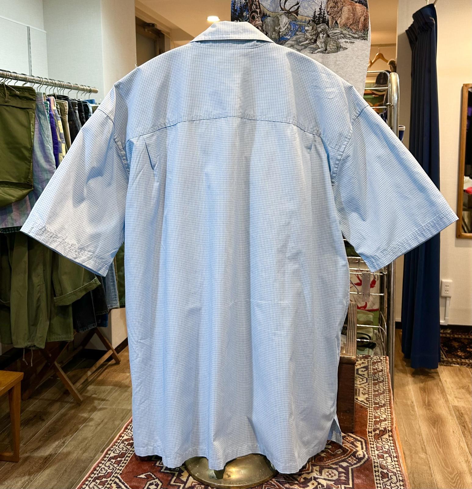 ビンテージ【パタゴニア】patagonia【水色】チェック ポリコットン 半袖シャツ【サイズXL】