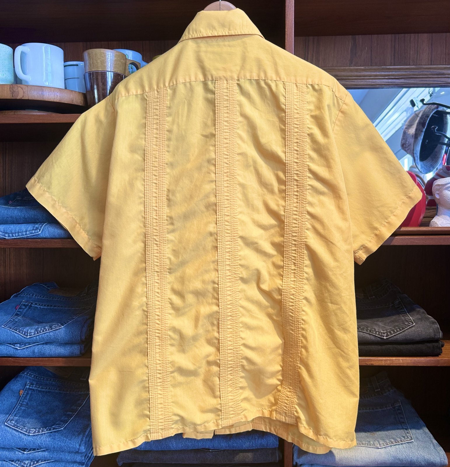 【90’s】ビンテージ【GUAYABERA】グァジャベーラ 黄色【キューバシャツ】半袖開襟シャツ【XL程度】