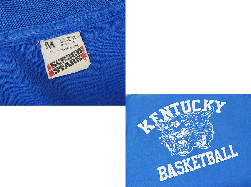 80’s【USA製】ビンテージ【スクリーンスターズ】【KENTUCKY BASKET BALL】【虎】【青】Tシャツ【M程度】