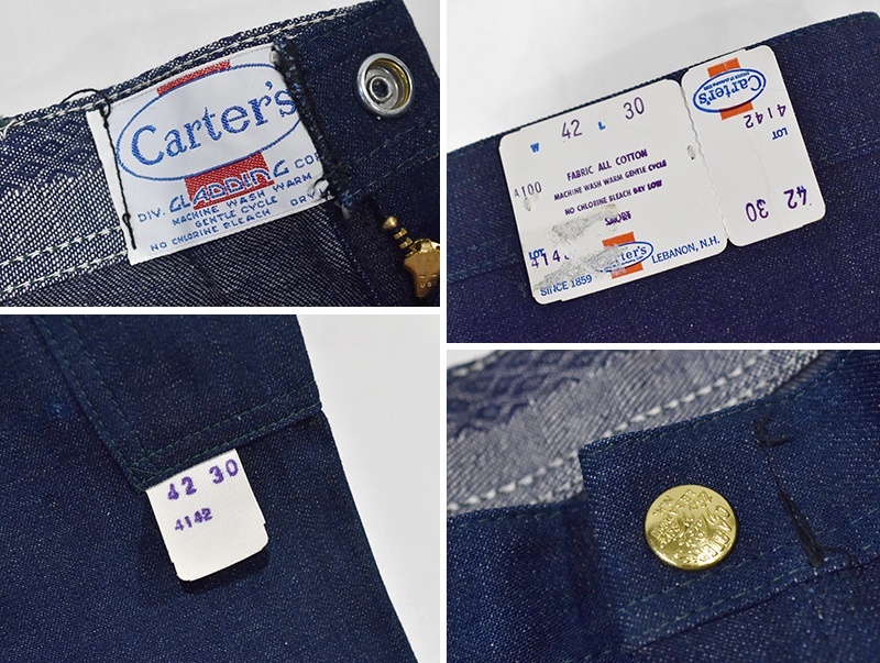 ~70's【デッドストック】USA製【ビンテージ】【Carter's】カーターズ【デニム】【ペインターパンツ】【紺】【42x30】