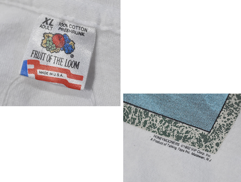 90's【USA製】 ビンテージ【FRUIT OF THE LOOM 】フルーツオブザルーム【The Honeymooners】ハネムーナーズ【ADDRESS THE BALL】白【 Tシャツ】【サイズXL】