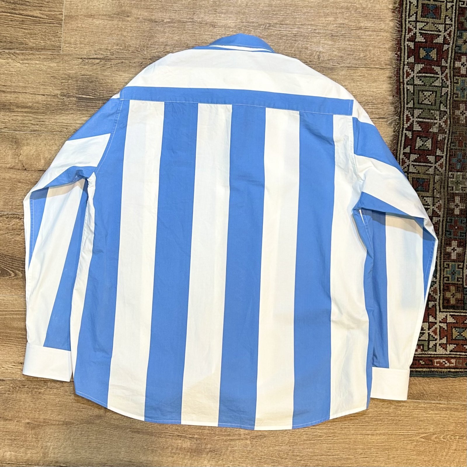 【FRENCH CROWN】フレンチクラウン ビンテージ【白x水色】ストライプ【コットン】シャツ 【サイズ46】