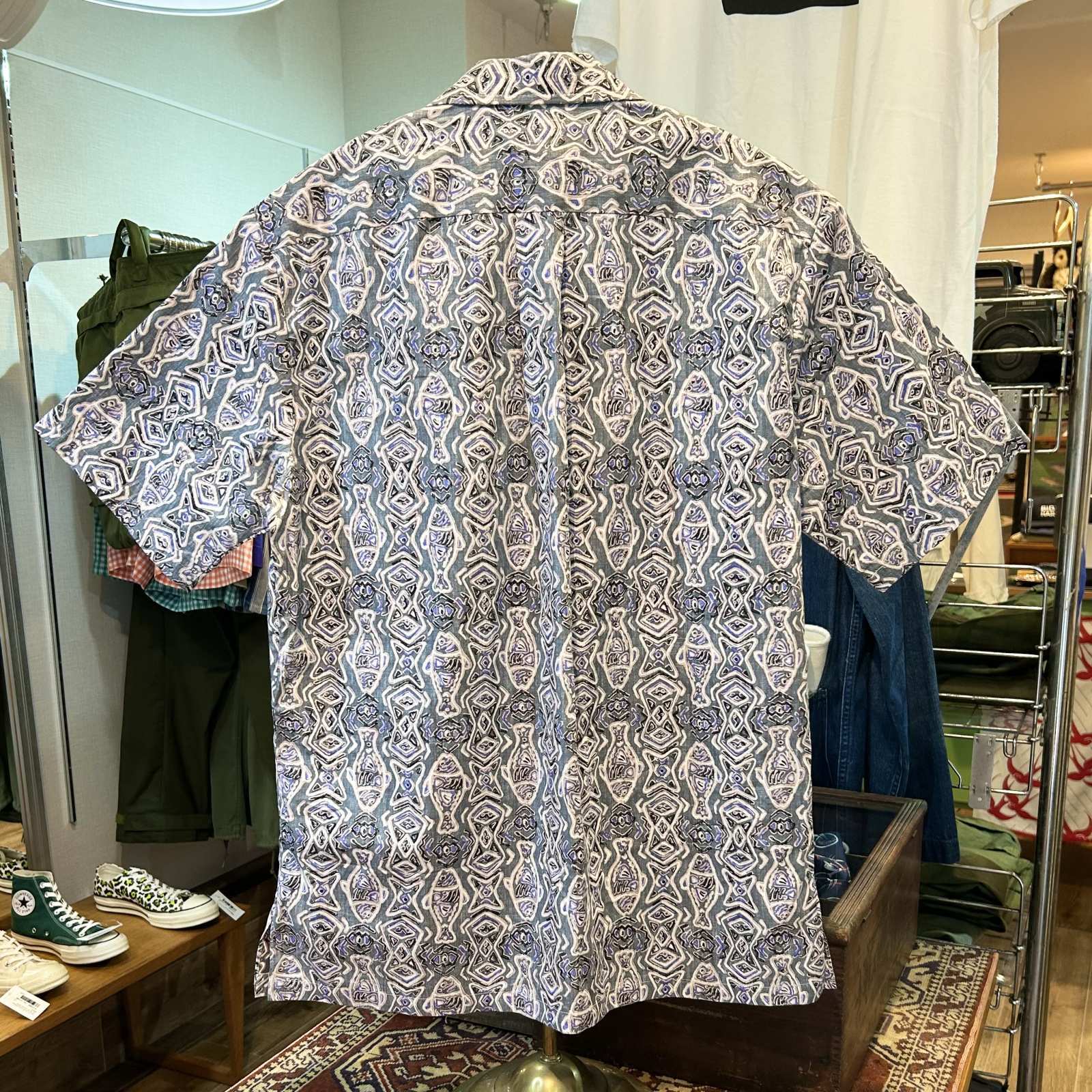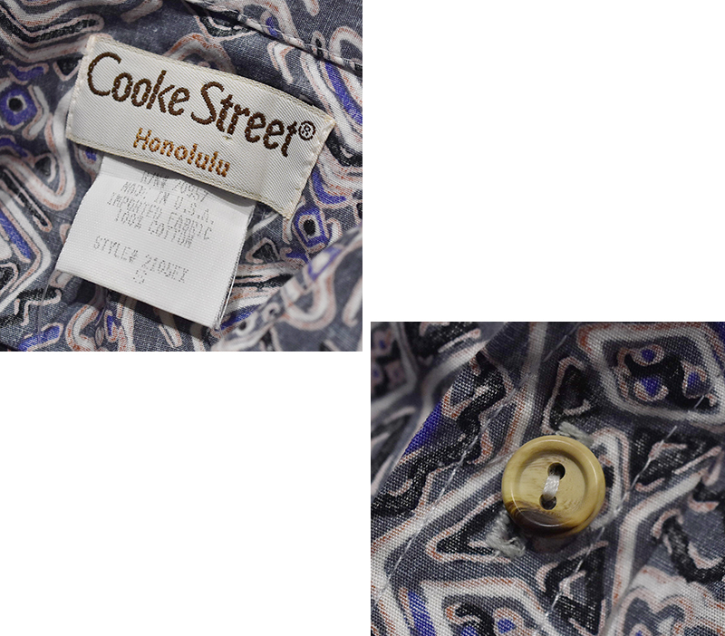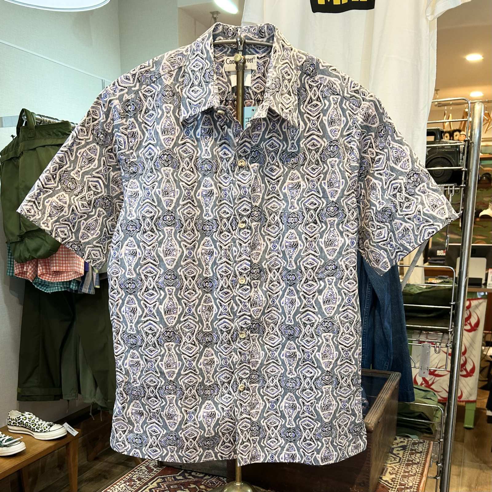 USA製【Cooke Street】クックストリート 魚柄【グレー】アロハシャツ【半袖シャツ】【サイズS】