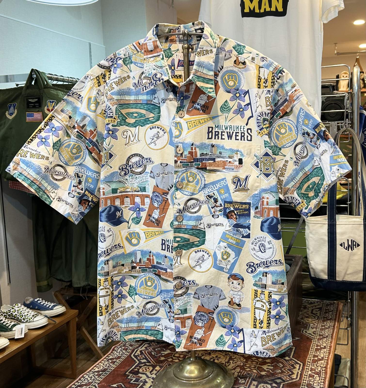 【REYN SPOONER】【レインスプーナー】【MLB】野球 Milwaukee BREWERS ミルウォーキー・ブルワーズ メジャーリーグ【アロハシャツ】半袖シャツ【サイズL】