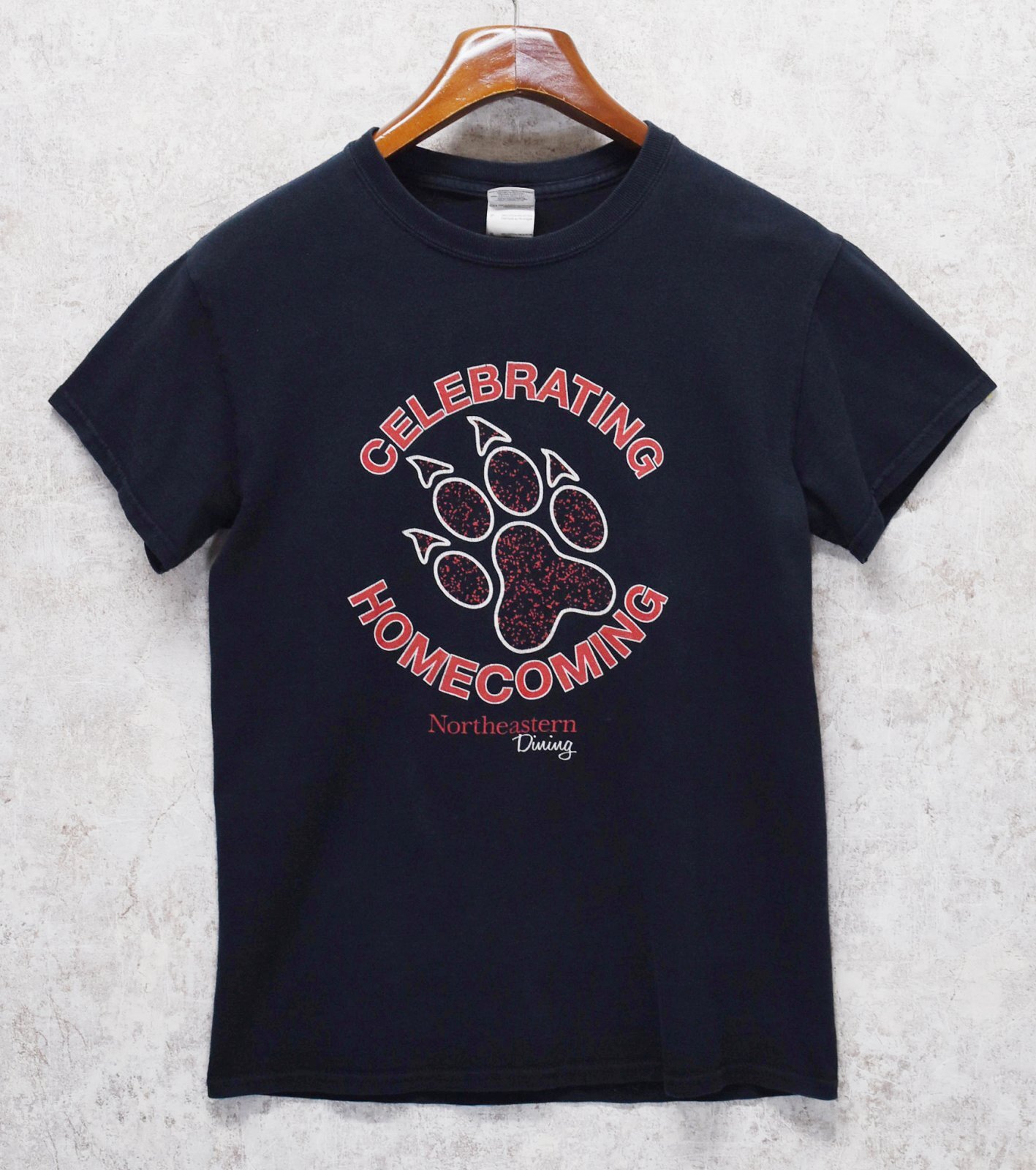 ビンテージ【GILDAN】【ギルダン】【CELEBRATING HOMECOMING】【黒】【肉球プリント】【Tシャツ】【サイズS】
