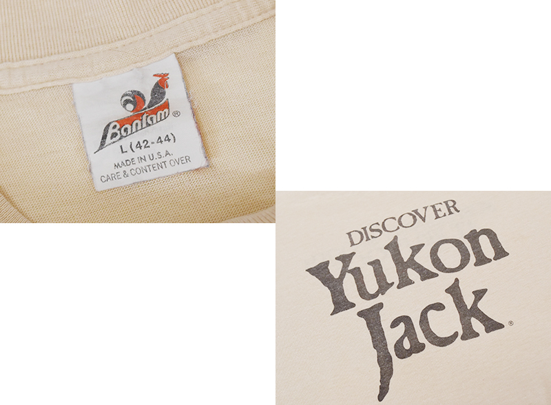 【80's~】【USA製】【ビンテージ】【Bantam】バンタム【ベージュ】【DISCOVER YUKON JACK】【Tシャツ】【サイズL】