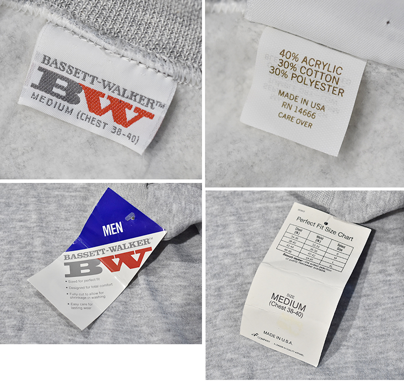 デッドストック【USA製】BW【BASSETT-WALKER】バセットウォーカー ビンテージ グレー【無地】スウェット サイズL