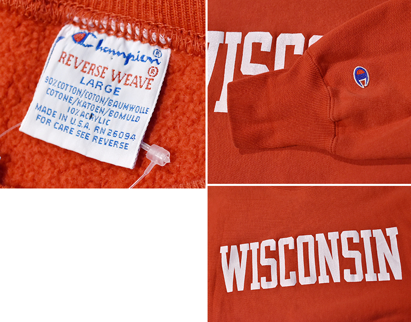 90’s USA製 ビンテージ【Champion】チャンピオン【リバースウィーブ】WISCONSIN【赤】【スウェット】【サイズXL】