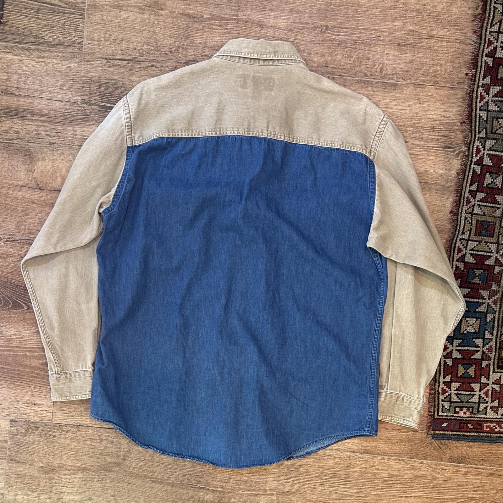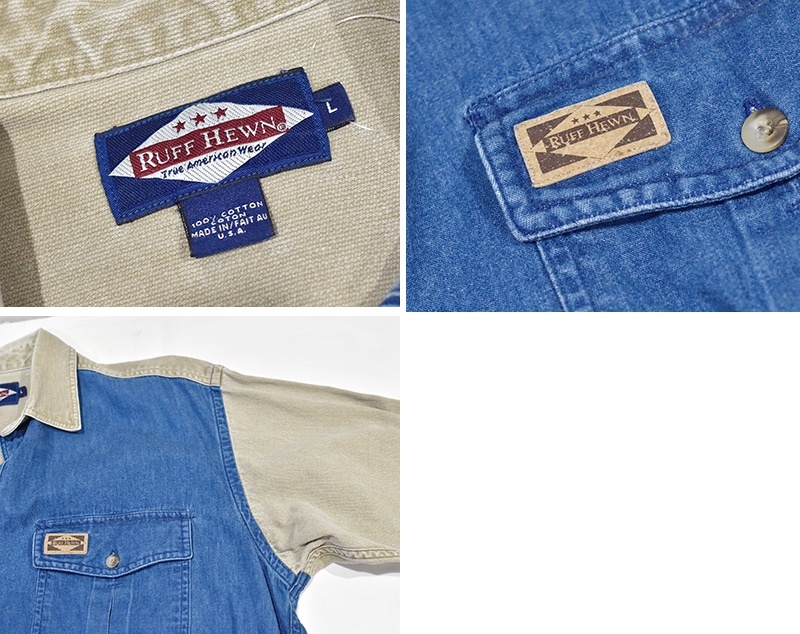 【USA製】【ビンテージ】【RUFF HEWN】ラフ・ヒューン【青×ベージュ】袖切替【デニムシャツ】【サイズL】