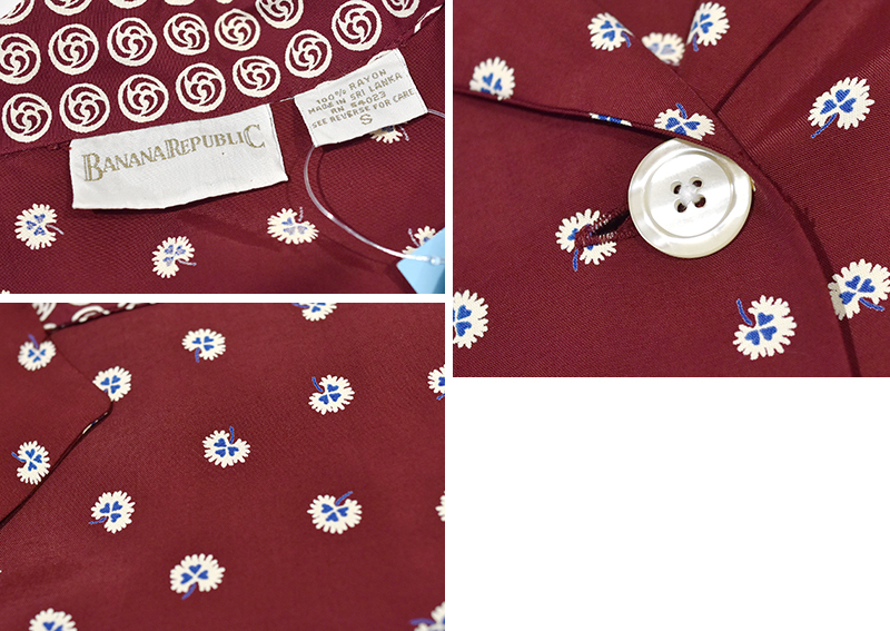 ビンテージ【BANANA REPUBLIC】バナナリパブリック【エンジ×白花柄】【レーヨンシャツジャケット】レディース古着【サイズS】