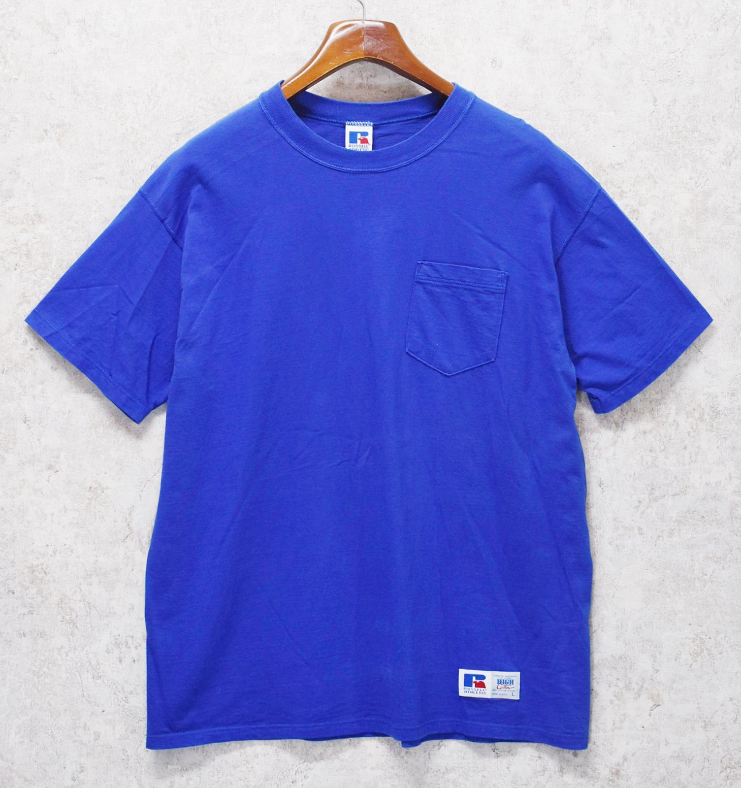 90’s【USA製】【Russell】【ラッセル】ブルー【青】無地【コットン】ポケット付き【Tシャツ】【サイズL】