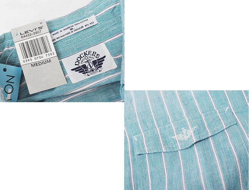 【デッドストック】90's【ビンテージ】【DOCKERS】ドッカーズ【リーバイス】【緑×白ストライプ】【半袖シャツ】【サイズM】