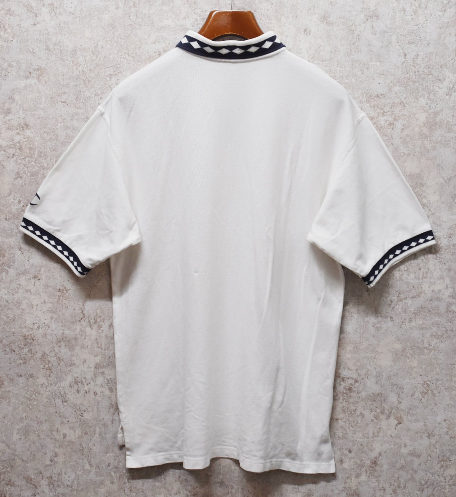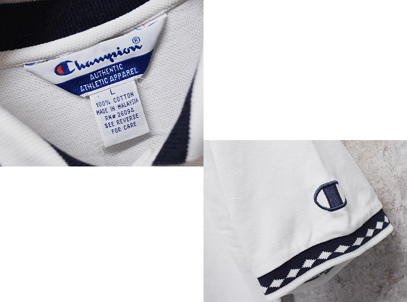 【ビンテージ】【champion】チャンピオン【白×紺ひし形】コットン【ポロシャツ】【サイズL】