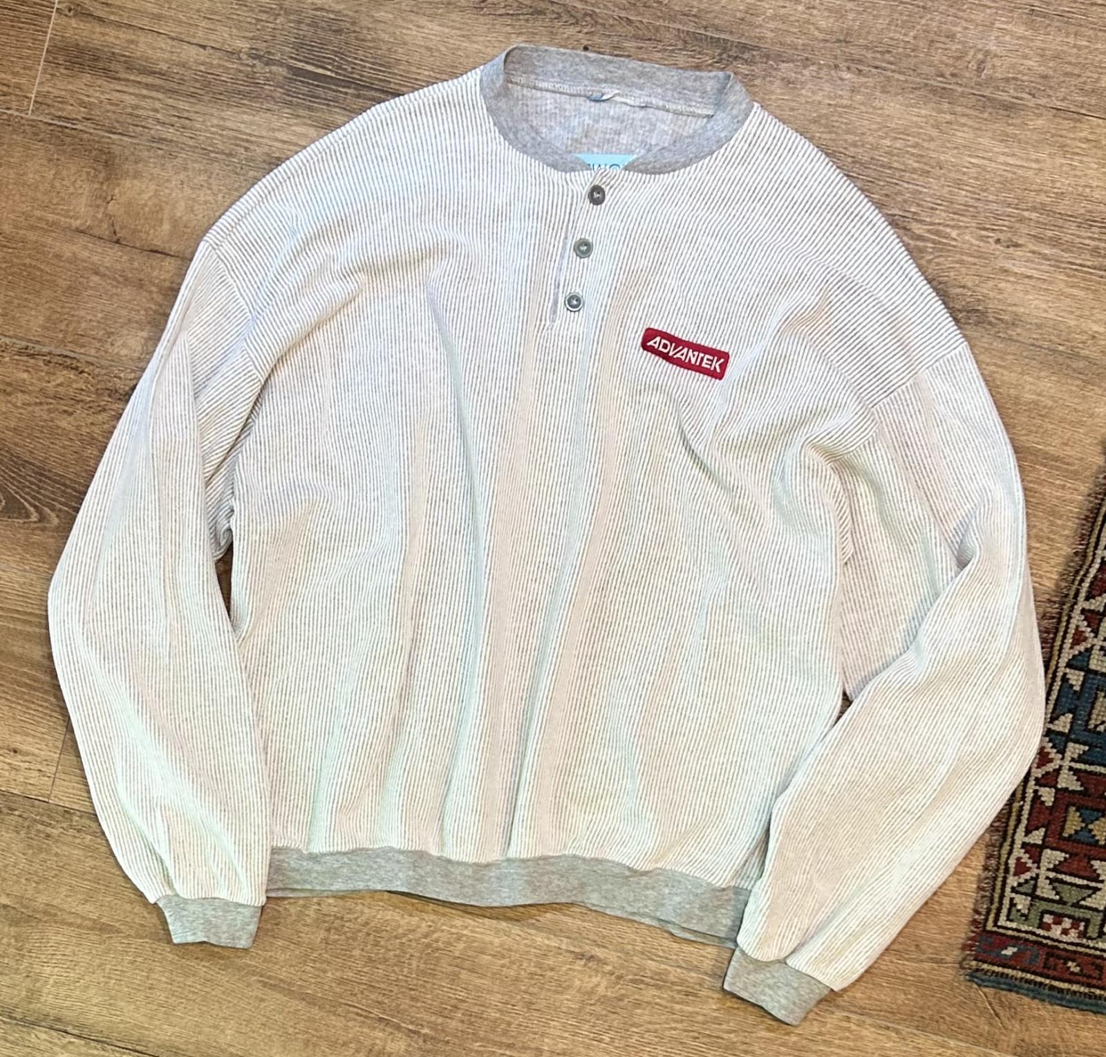 ADVANTEK 【アドバンテック】【ビンテージ】【グレー】ストライプ ヘンリーネックスウェット【サイズXL程度】