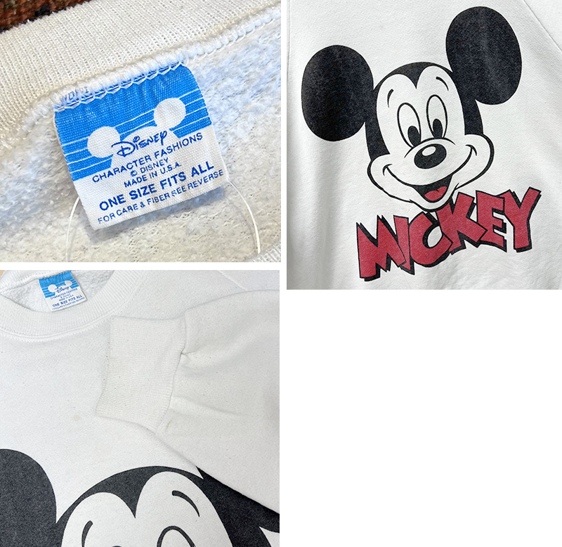 80's【USA製】【ビンテージ】ウォルトディズニー【ミッキーマウス】白 クルーネック【スウェット】【ワンサイズ】