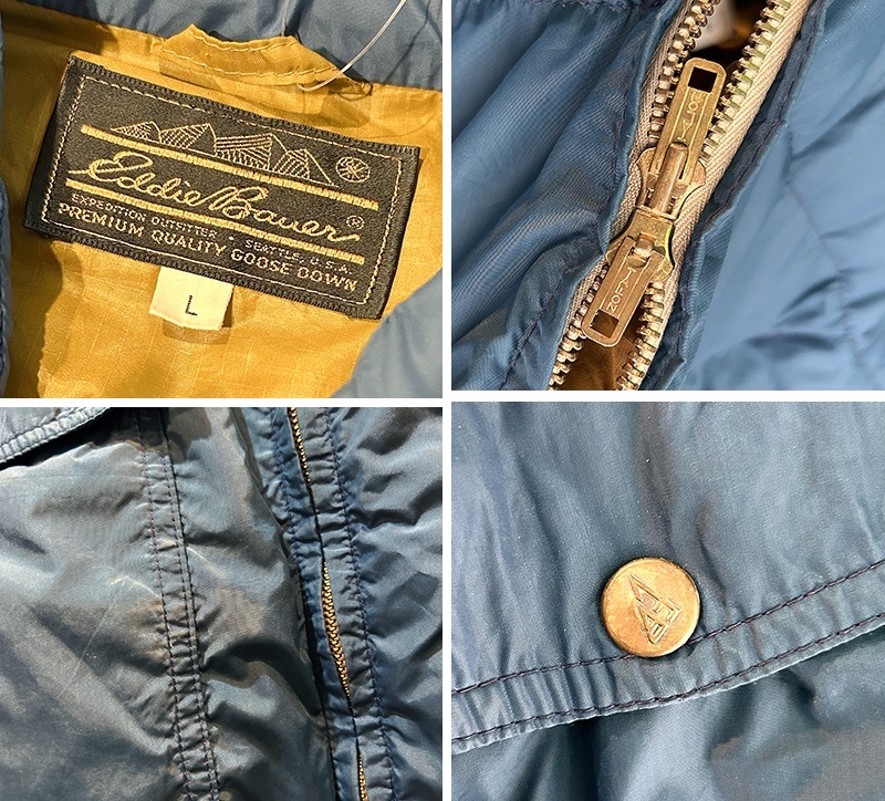 〜80's【ビンテージ】【Eddie Bauer】【エディーバウアー】【紺】リップストップ 黒タグ ダウン【ダウンベスト】【サイズL】