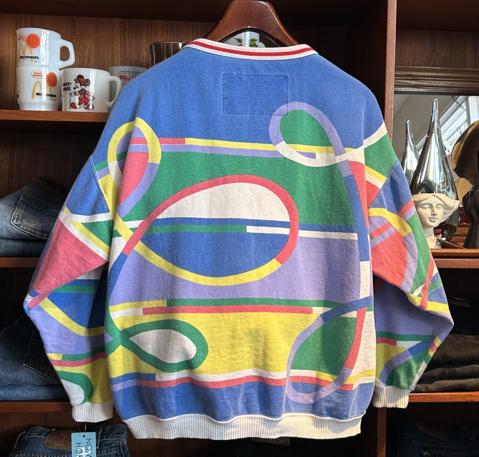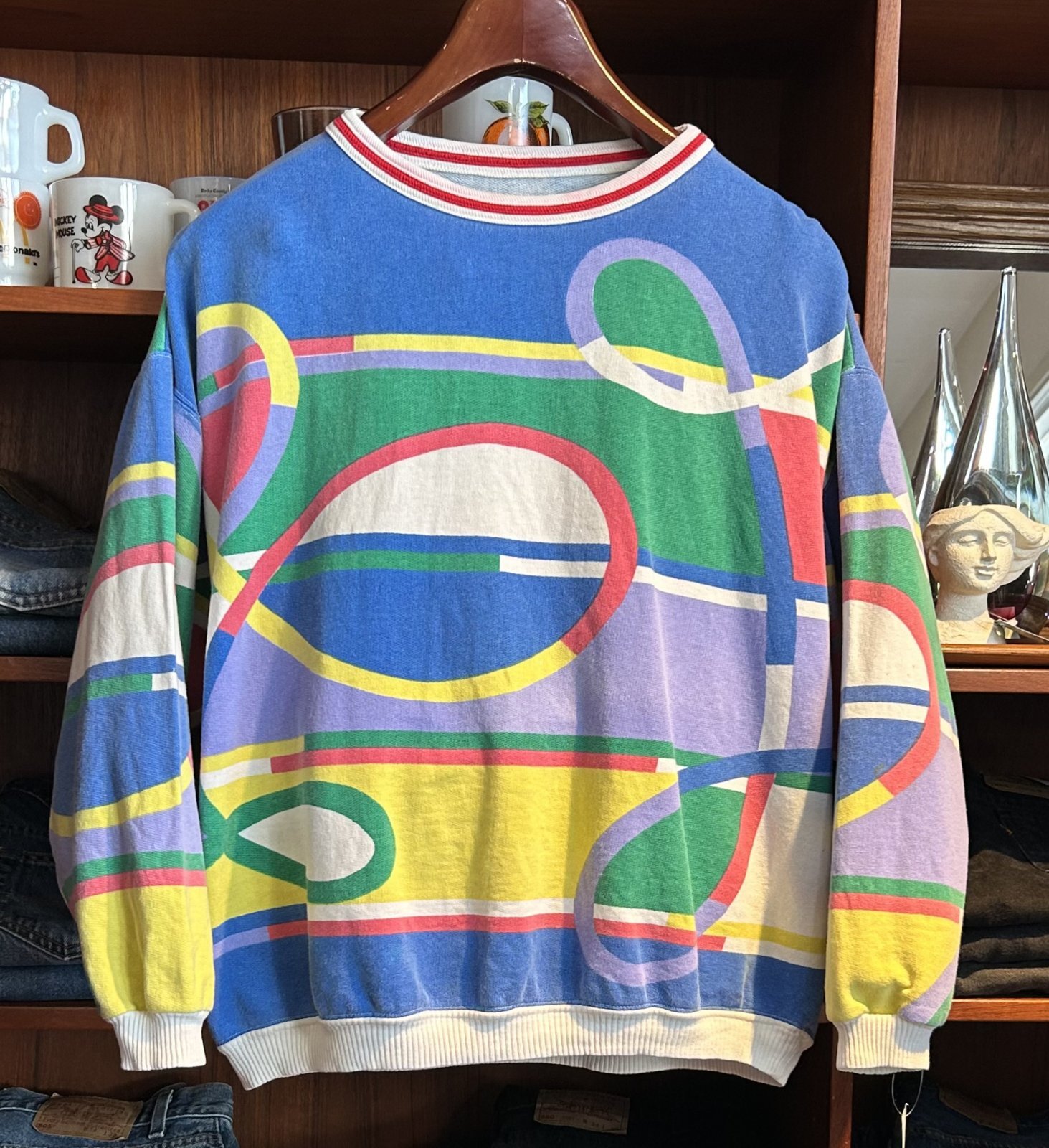 USA製【ビンテージ】【GREENIE APG】【カラフル】総柄【リブ付き】ロンT【スウェット】【レディース古着】【サイズW-M程度】