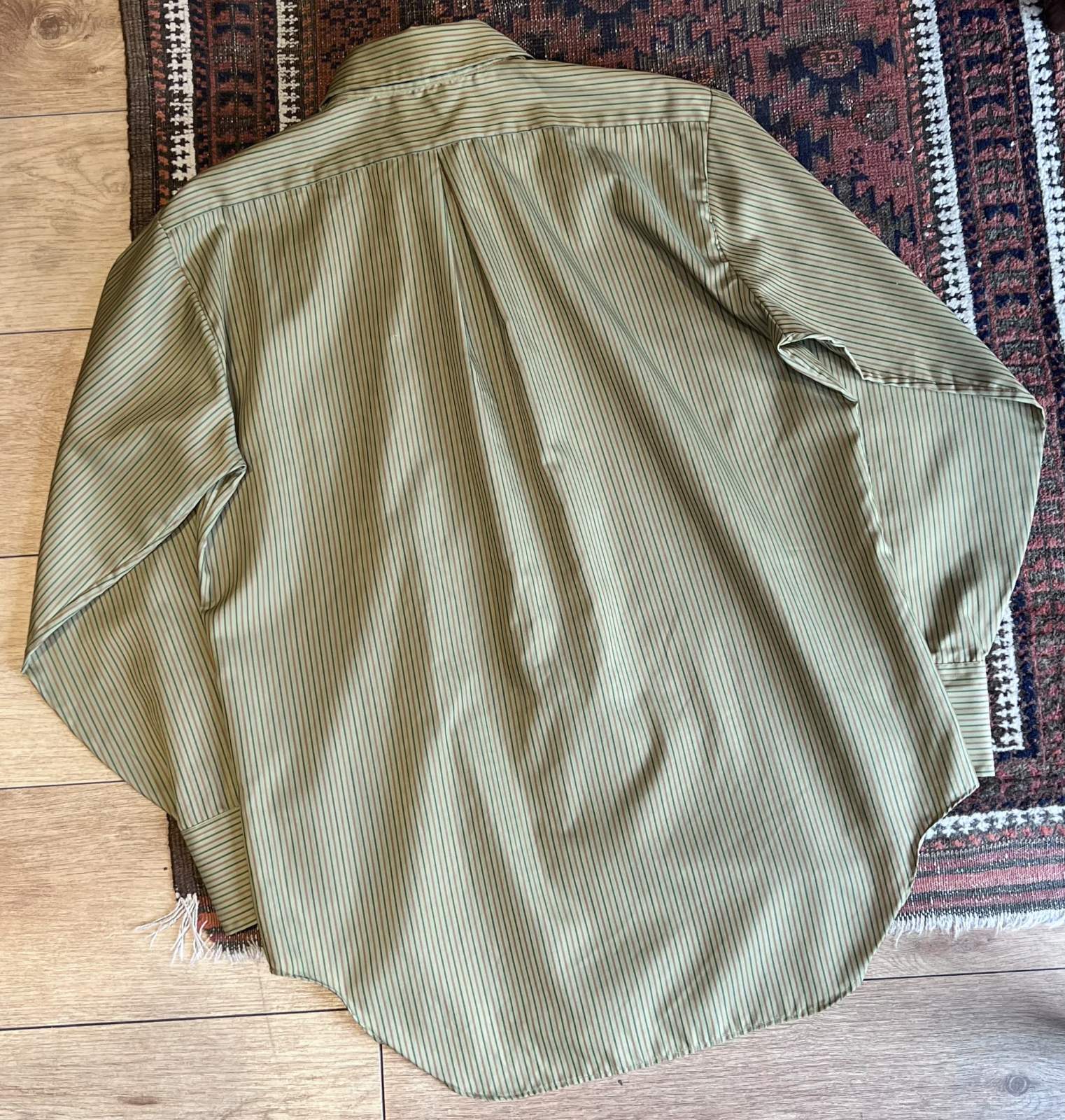 70's【ビンテージ】【BOND】ボンド【緑×オレンジストライプ】【ポリコットン】長袖シャツ【サイズXL程度】