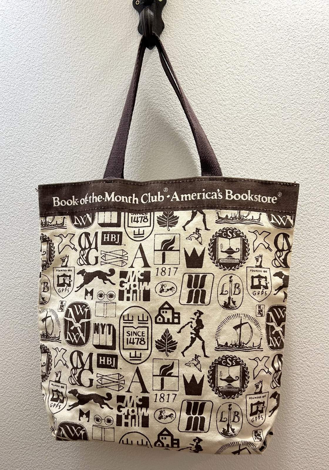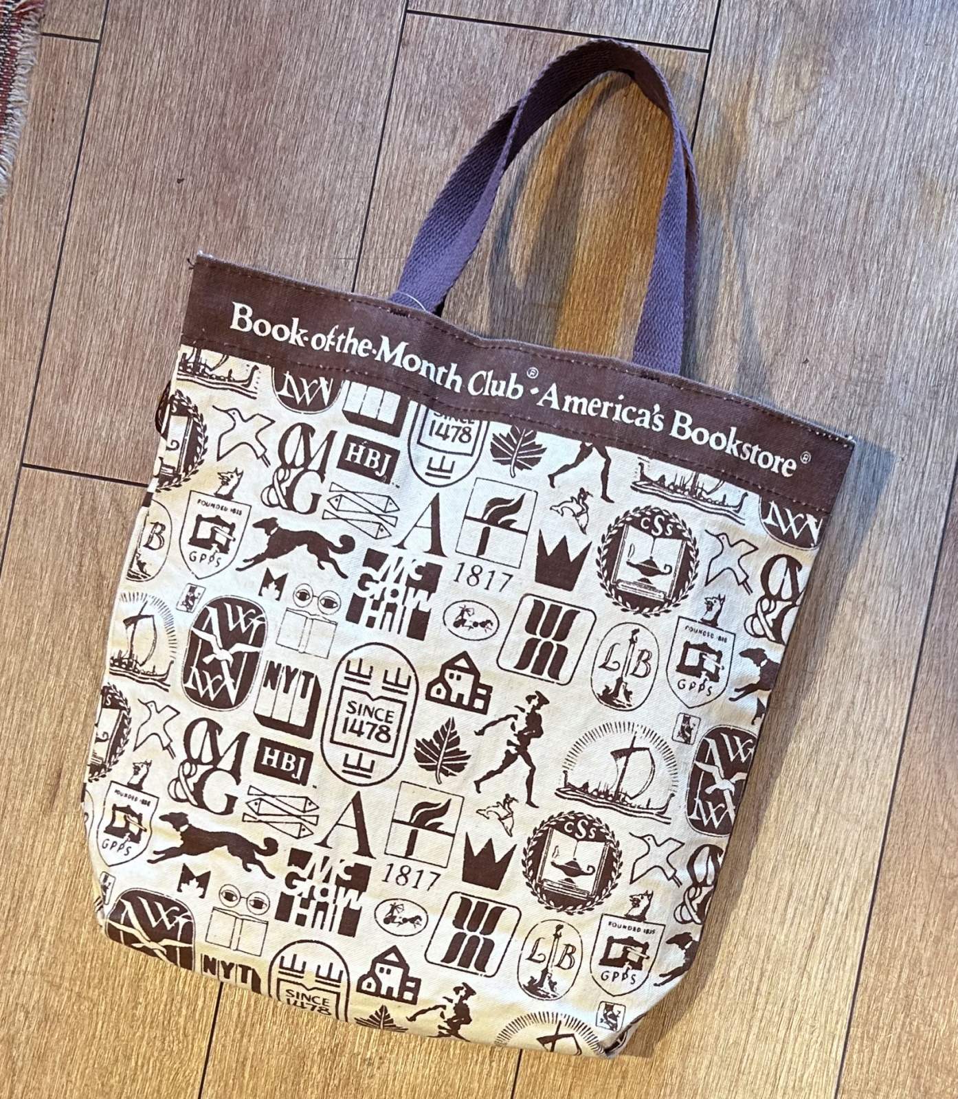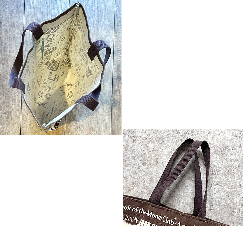デッドストック【ビンテージ】【Book of the Month club】【生成りxブラウン】マチ付き【トートバッグ】