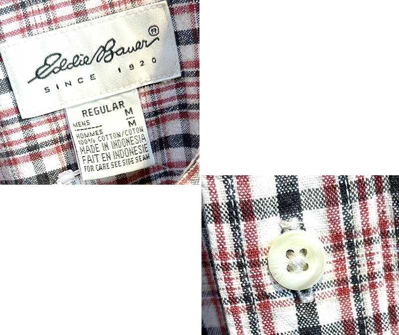 90’s〜【ビンテージ】【エディーバウアー】【白x赤x黒】チェック柄【コットンボタンダウンシャツ】【サイズM】