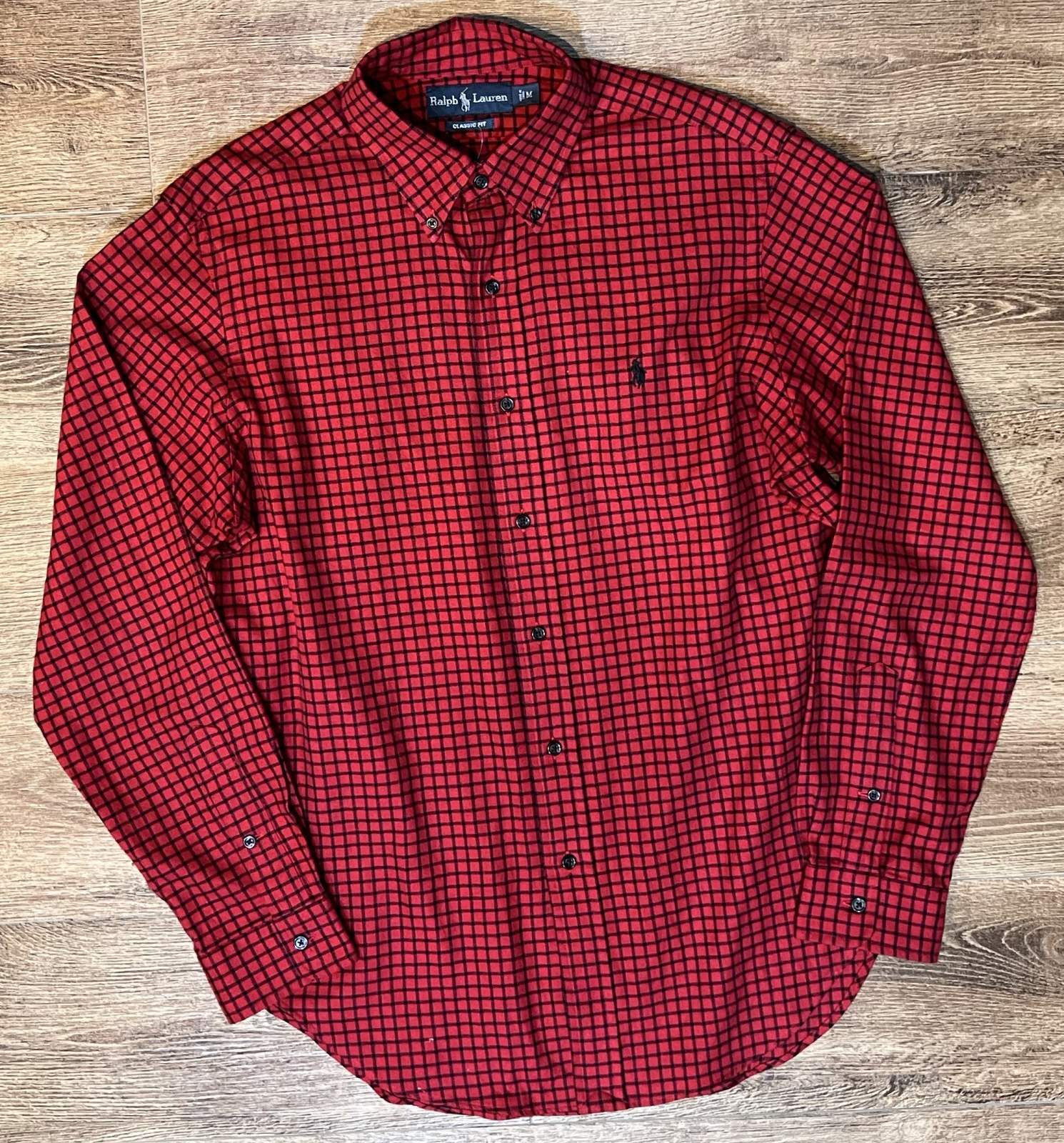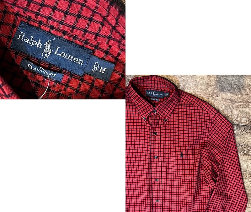 程度良好!!【ラルフローレン】【POLO ralph lauren】【クラシックフィット】【赤×黒チェック】ボタンダウン【BDシャツ】【サイズM】