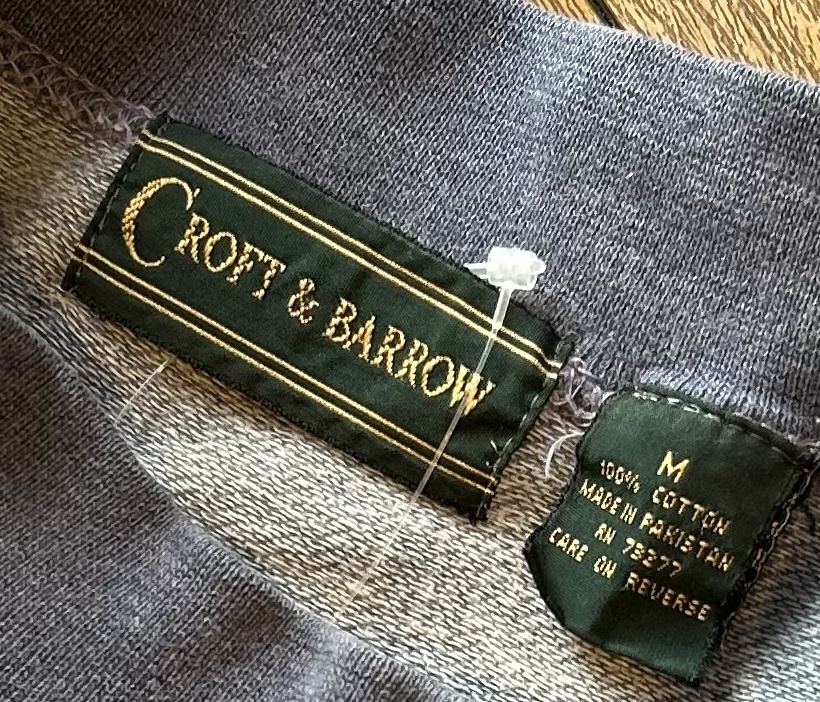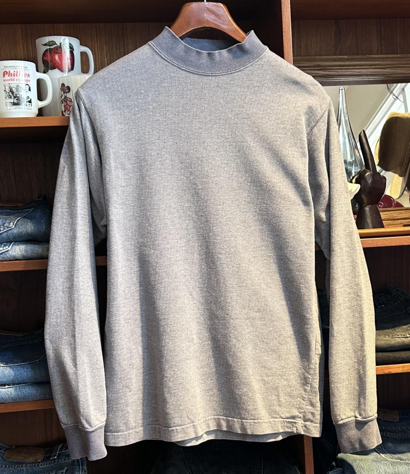 ビンテージ【CROFT&BARROW】クラフト・アンド・バロー【水色】HBT ヘリンボーン 無地【モックネックロンT】【サイズM】