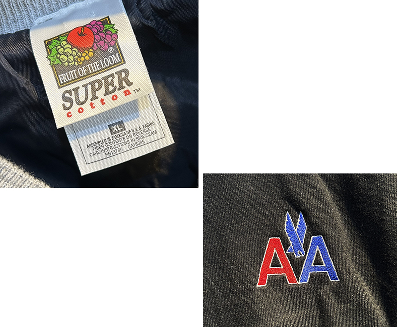 【ビンテージ】FRUIT OF THE LOOM【フルーツオブザルーム】【黒xグレー】【スウェットスタジャン】【サイズXL】