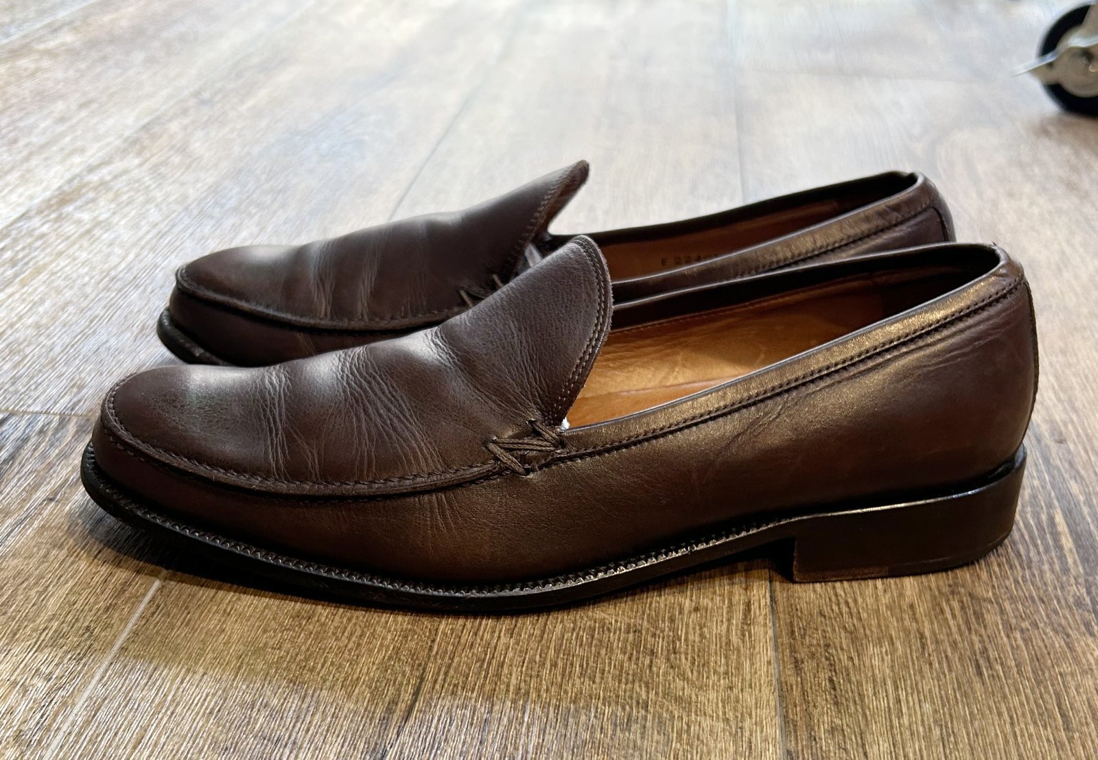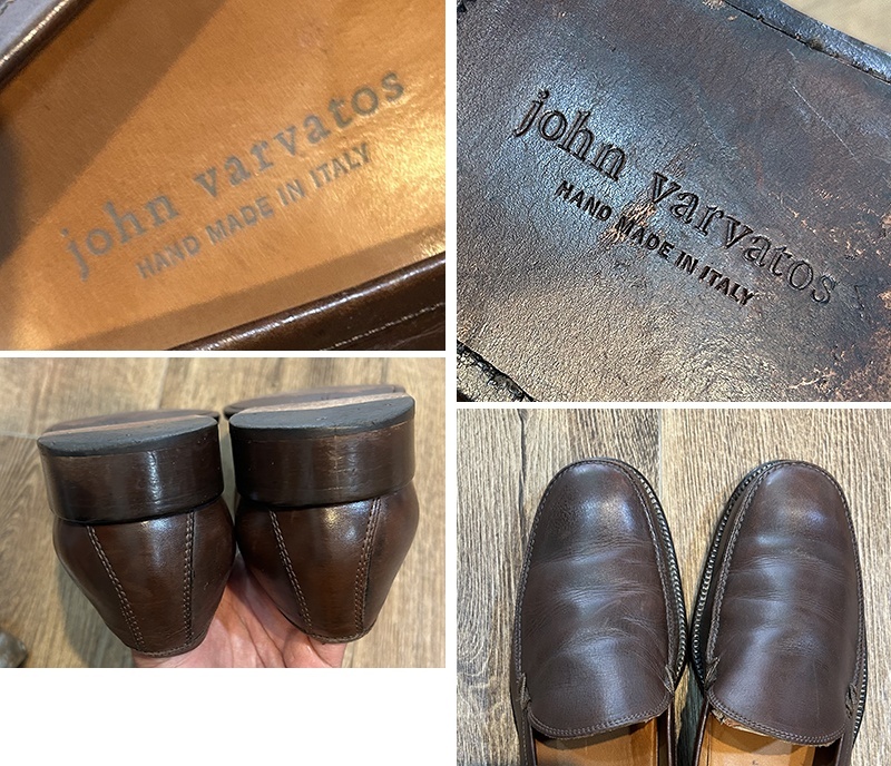 【イタリー製】【john varvatos】ジョン ヴァルヴェイトス【ブラウン】 【ローファー】レザーシューズ【US8 1/2】