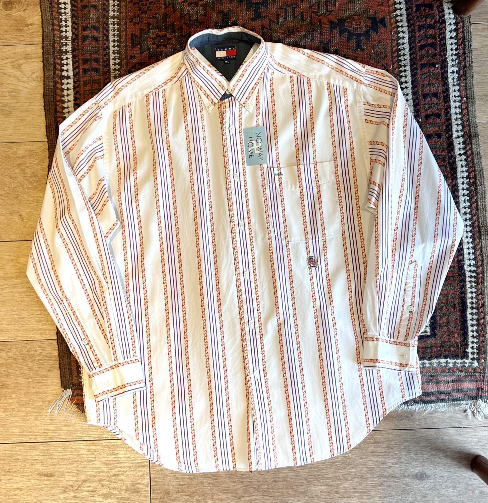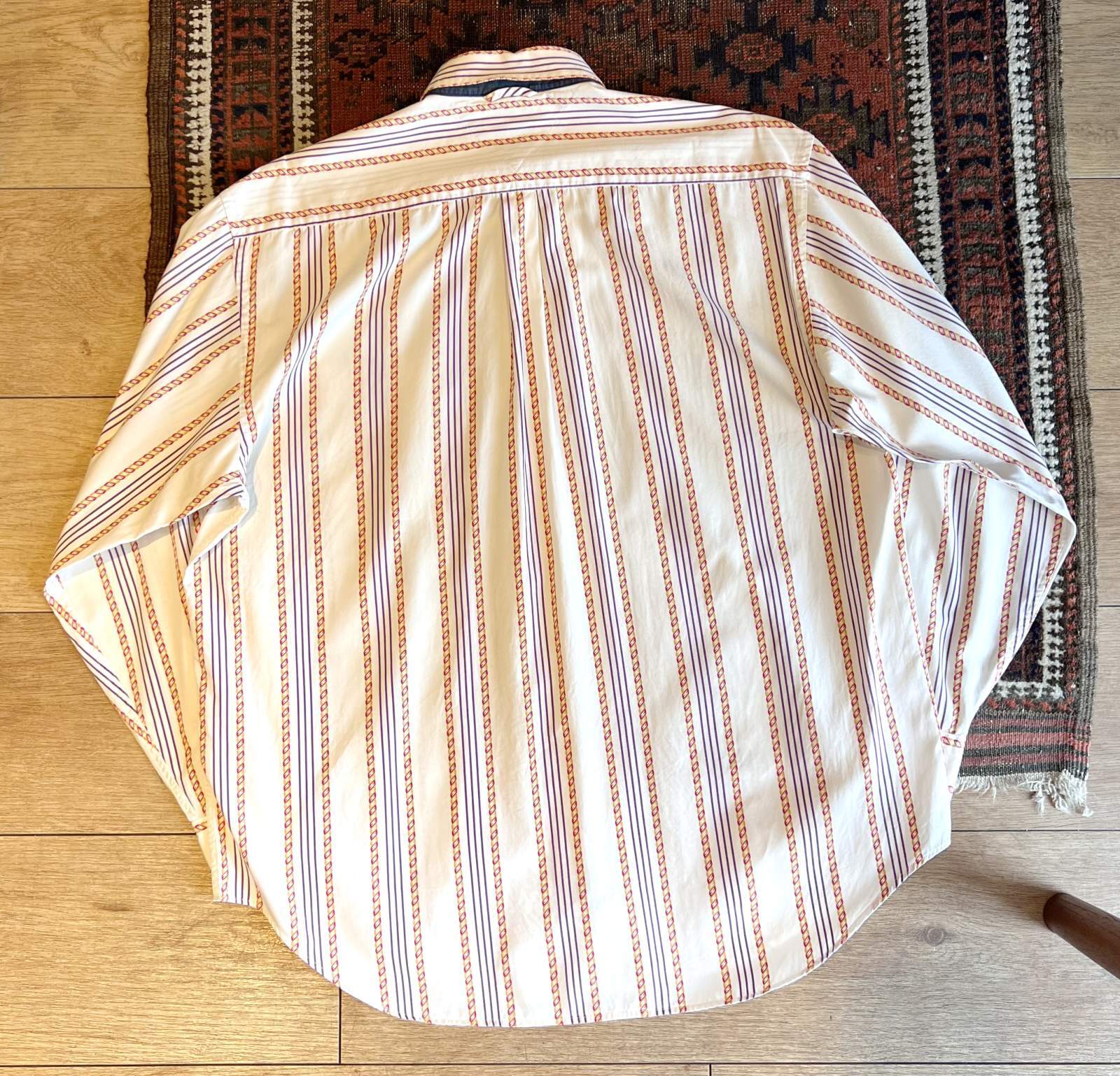 ビンテージ【TOMMY HILFIGER】トミーヒルフィガー【クリームx紫x黄】ストライプ【ボタンダウンシャツ】【サイズM】
