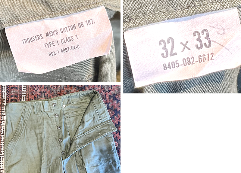 デッドストック【60's】【米軍実物】U.S.ARMY【ビンテージ】OG107【ベイカーパンツ】サイドアジャスター付き【ユーティリティパンツ】【32x33】