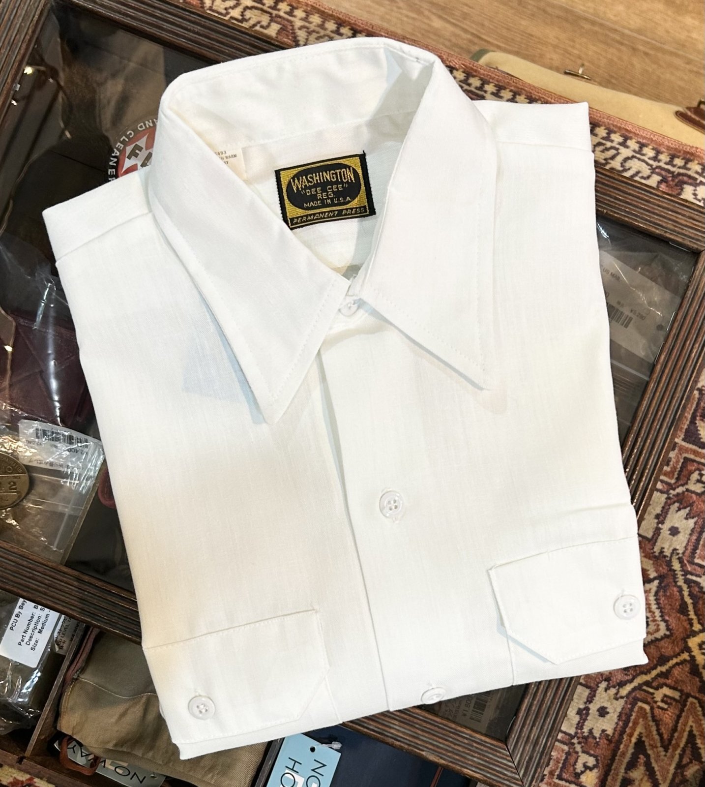 【デッドストック】USA製【ビンテージ】【WASHINGTON DEECEE】ワシントン・ディーシー【白】無地【ワークシャツ】【サイズM】