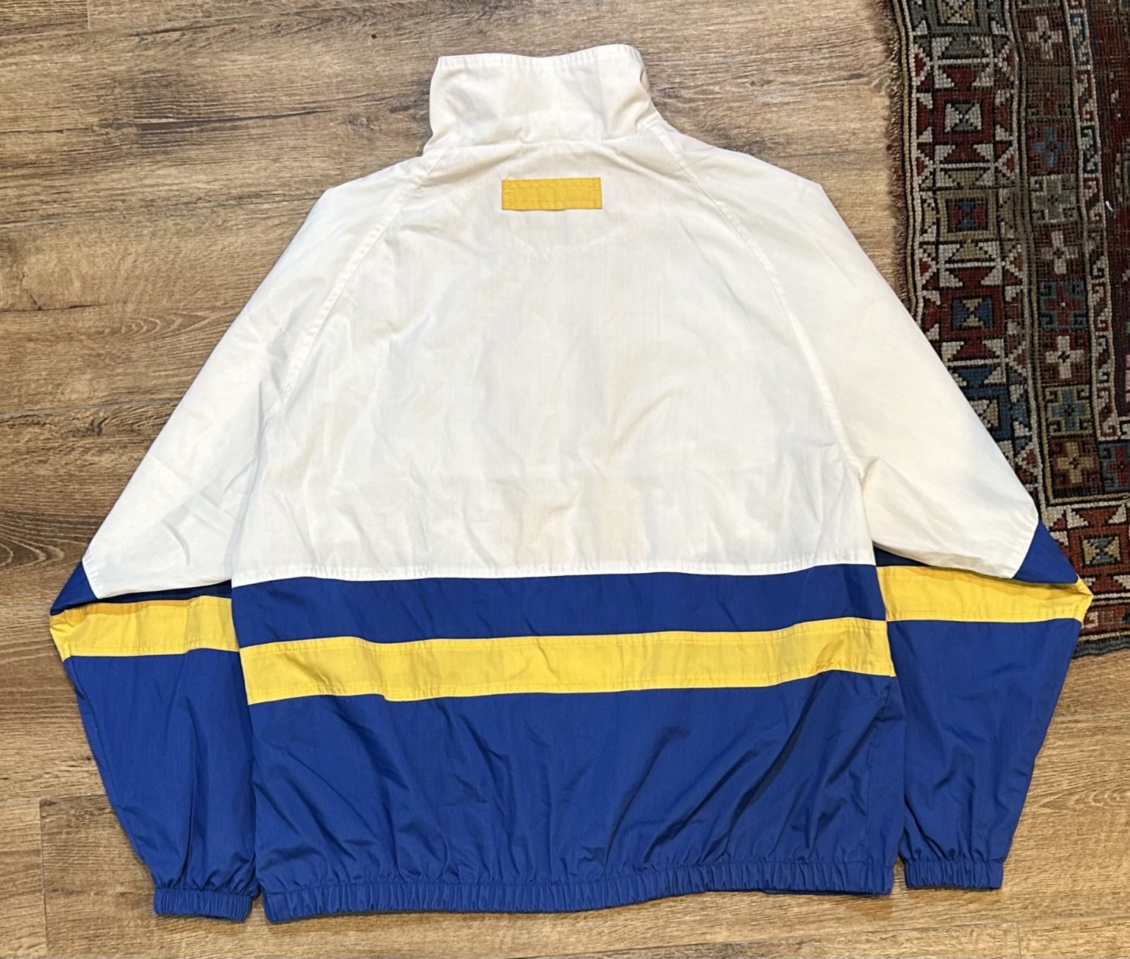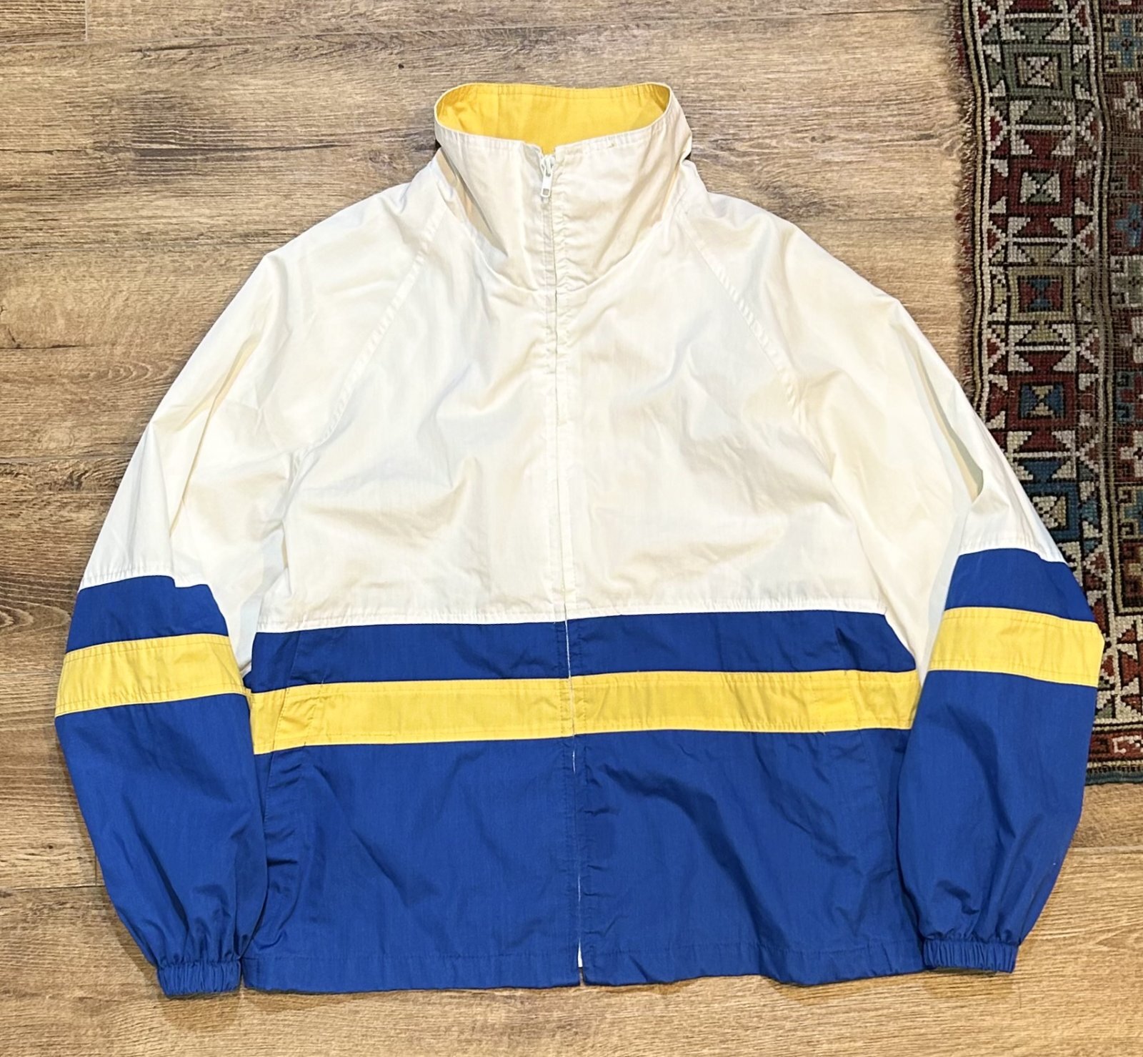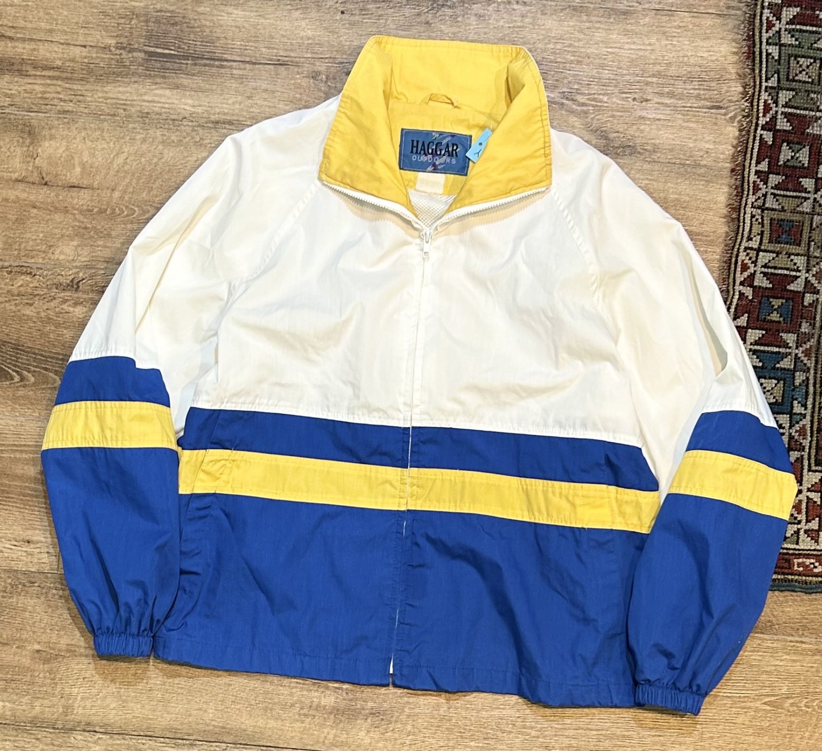 【ビンテージ】【HAGGAR】【ハガー】白x青x黄【ライン】ナイロンブルゾン【XL程度】