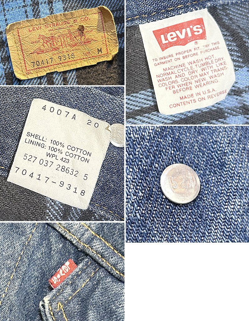90’s【USA製】ビンテージ【LEVI'S】【リーバイス】【70417-9318】【裏地青チェック】【デニムジャケット】【サイズM】