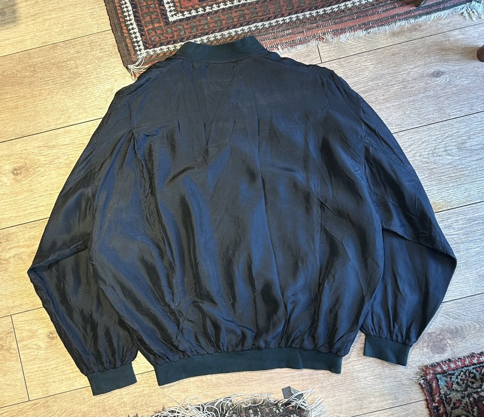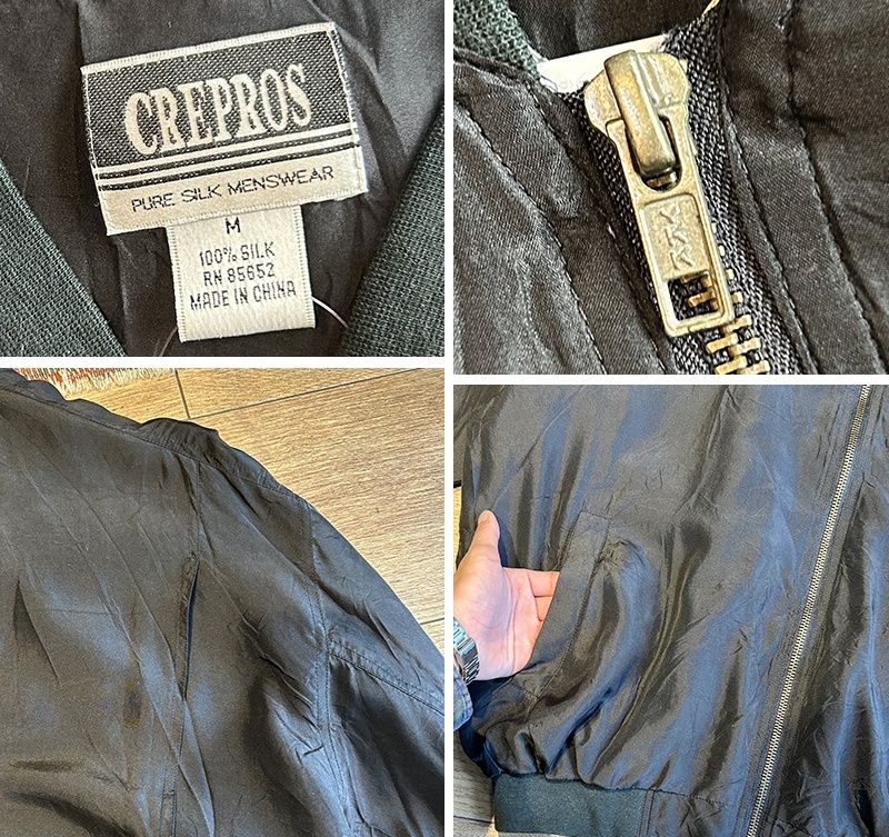 【ビンテージ】【CREPROS】【黒】ジップアップ【シルクブルゾン】シルクジャケット【サイズM】