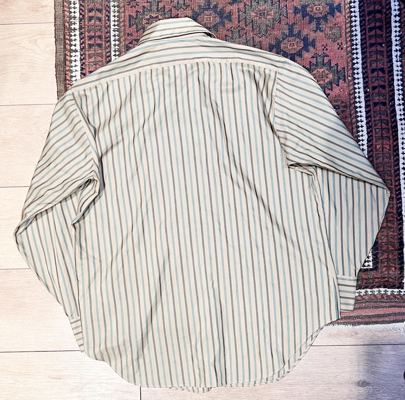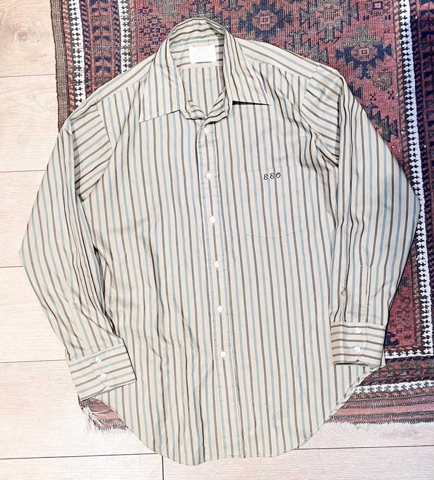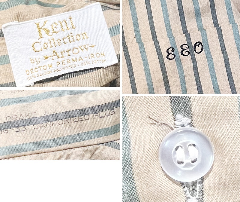 70's【ビンテージ】【Arrow kent collection】アロー【ベージュ×緑】ストライプ【ポリコットンシャツ】【16-33】