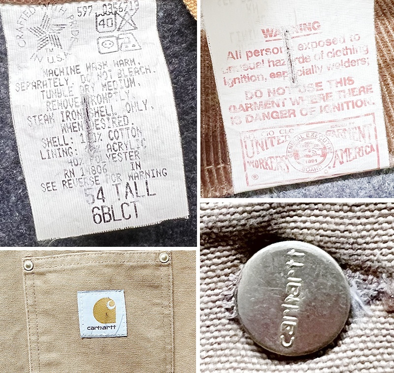 〜90's USA製【ビンテージ】【Carhartt】【カーハート】バックプリント付き【ブランケット裏地付き】【キャメル】ダック地 【ミシガンチョアコート】【ダックジャケット】54TALL